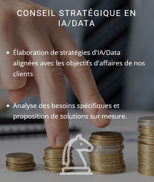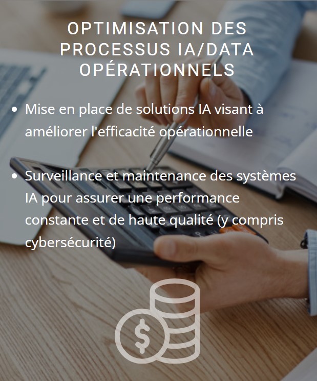 A travers nos services, notre expérience et notre expertise vous guideront dans l'ingénierie et le déploiement réussis d'une IA opérationnelle, robuste et fiable qui vous permettra de garder votre position de leader dans votre marché.