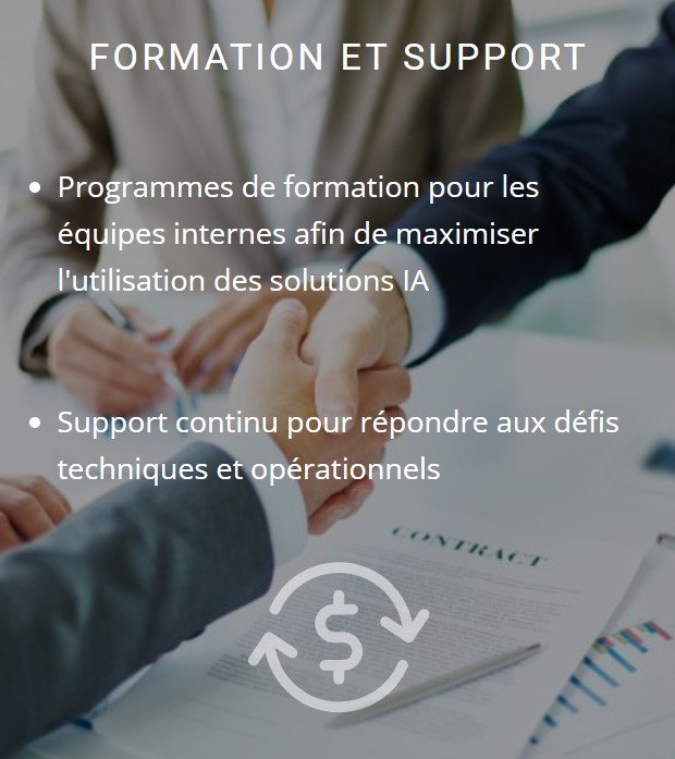 Une attention particulière est portée à la formation de vos équipes pour une acculturation et une montée en compétences IA réussies.