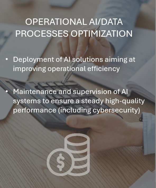 Our services cover the entire AI value creation chain, from the AI strategic roadmap to its operational deployment, through the engineering and development work packages.