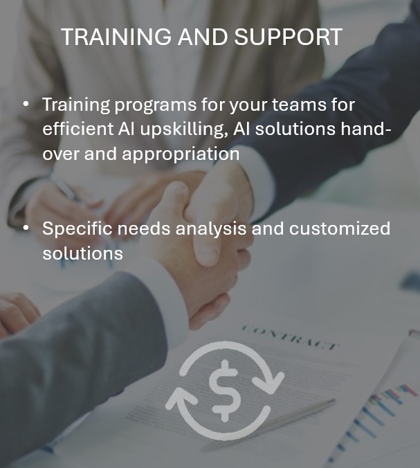 This support can also include a la carte training component to support the development of AI skills at our customers. These training modules combine academic presentations and hands-on modules in which participants build, train and test symbolic AI or deep learning models themselves. 'à la carte' services!